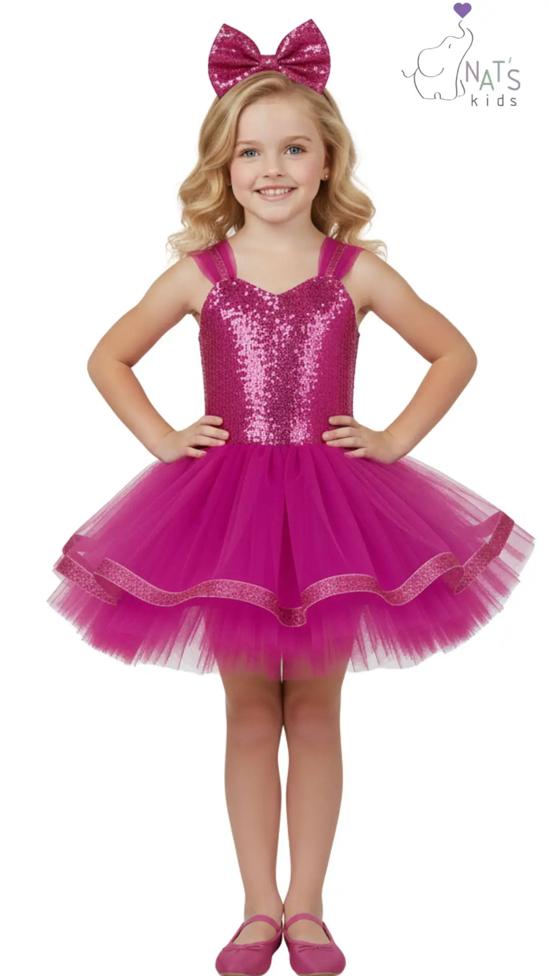 Aksesuarlar: Modelin taktığı, elbise ile aynı payetli kumaştan yapılmış büyük bir saç fiyongu (saç bandı veya klipsi) elbisenin tamamlayıcısıdır.