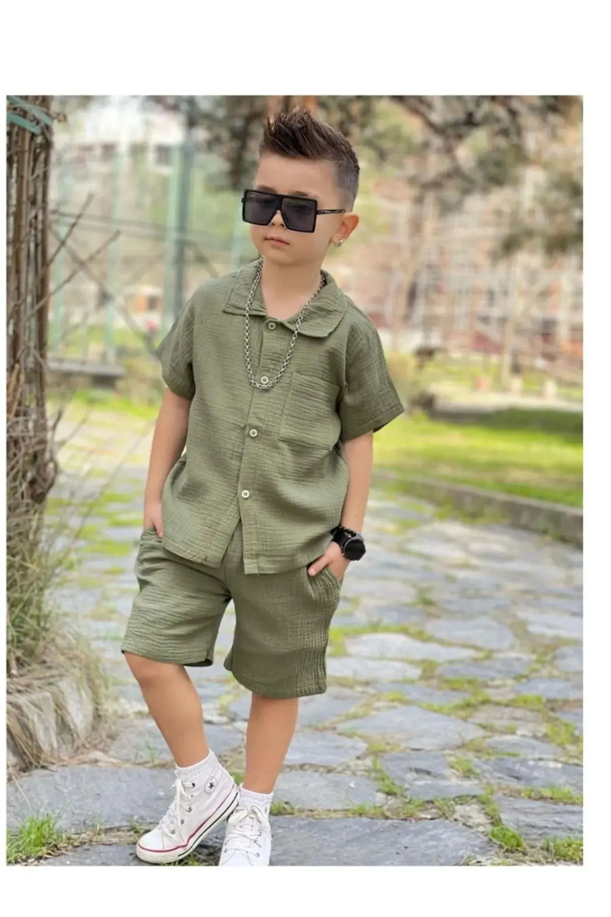 Cep Detaylı Erkek Çocuk Şortlu Takım