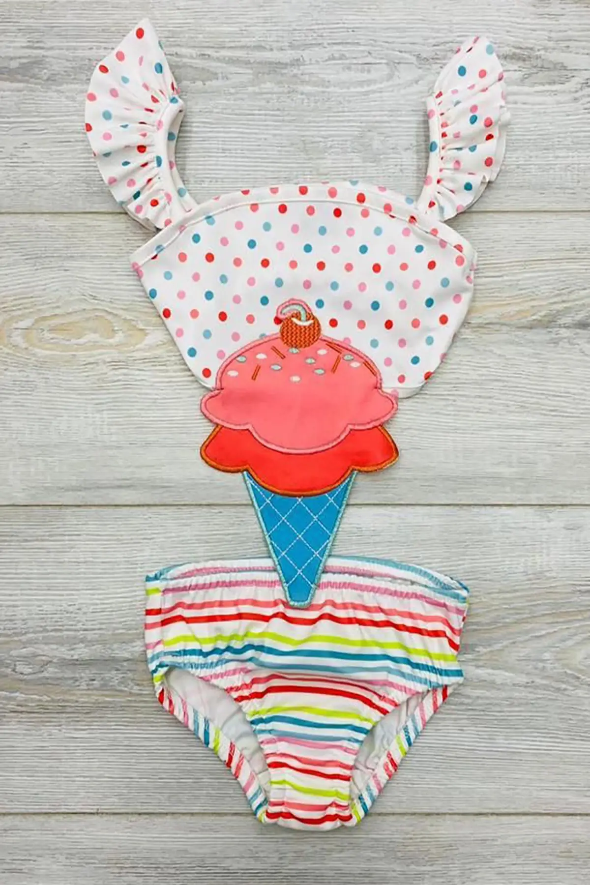 Dondurma Desenli Kız Çocuk Mayokini