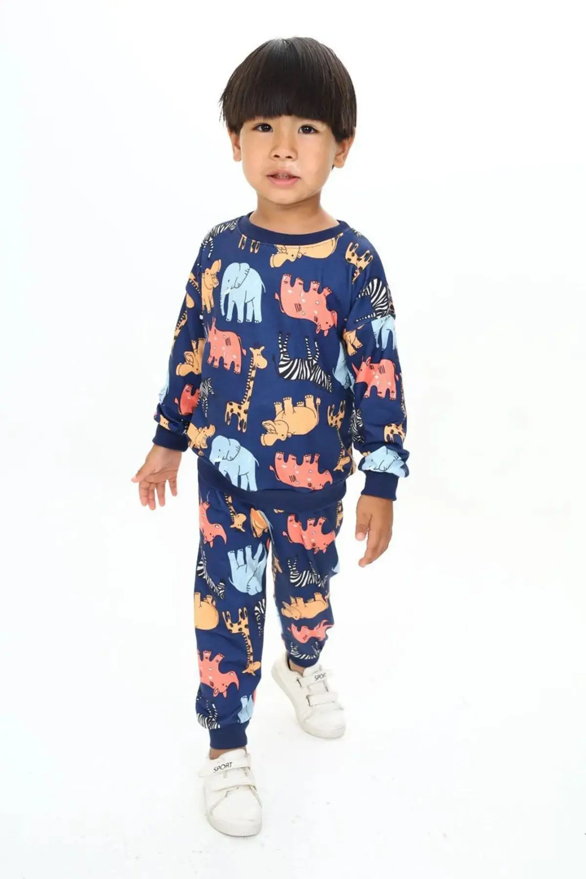 Fil Desenli Bisiklet Yaka Alt Üst Takım