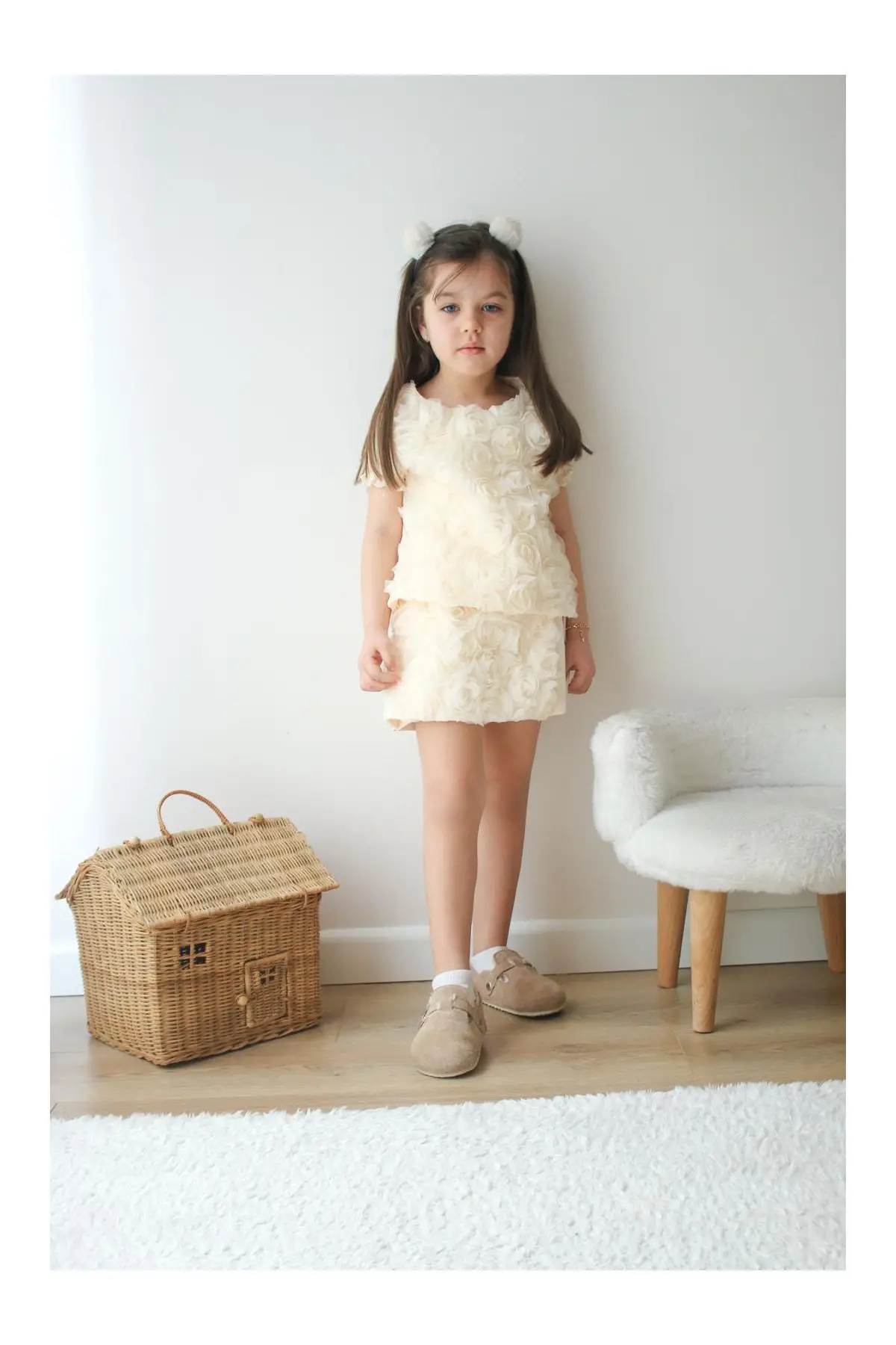 Kız Çocuk Çicek Dokulu Alt Üst Takım