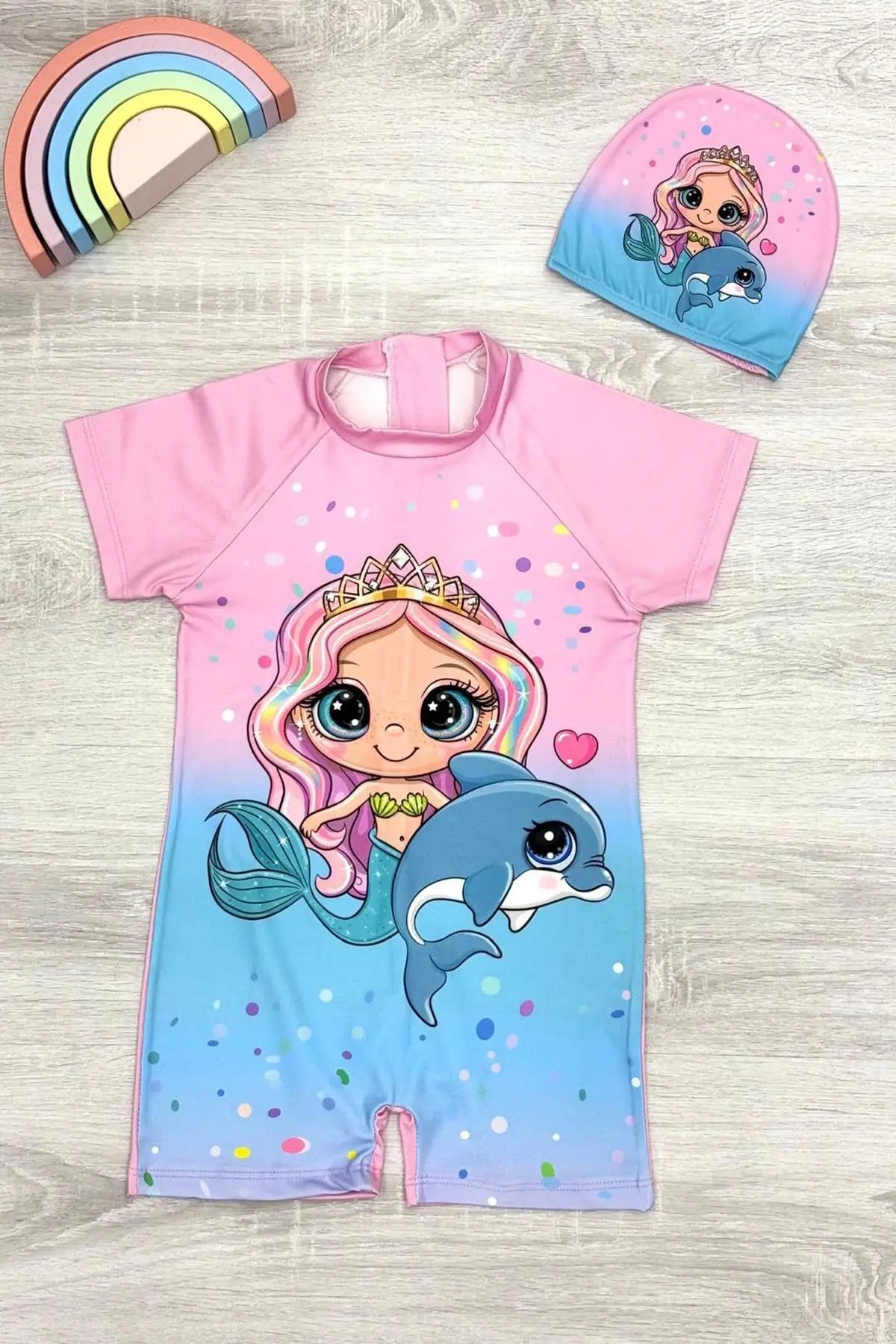 Kız Çocuk Dalgıç Kumaş Gizli Fermuarlı Boneli Mayo Takımı 3-10 Yaş 11206
