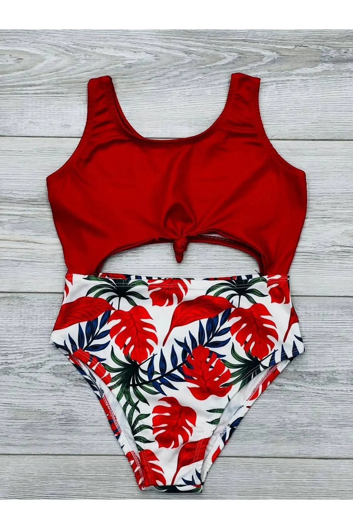 Kız Çocuk Sırt Detaylı Önden Bağlamalı Desenli Mayo
