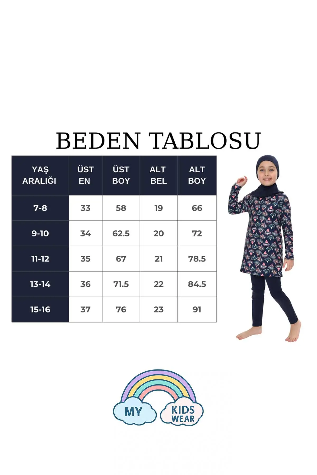 Kız Çocuk Tesettür Mayo Takımı 7-16 Yaş 11459