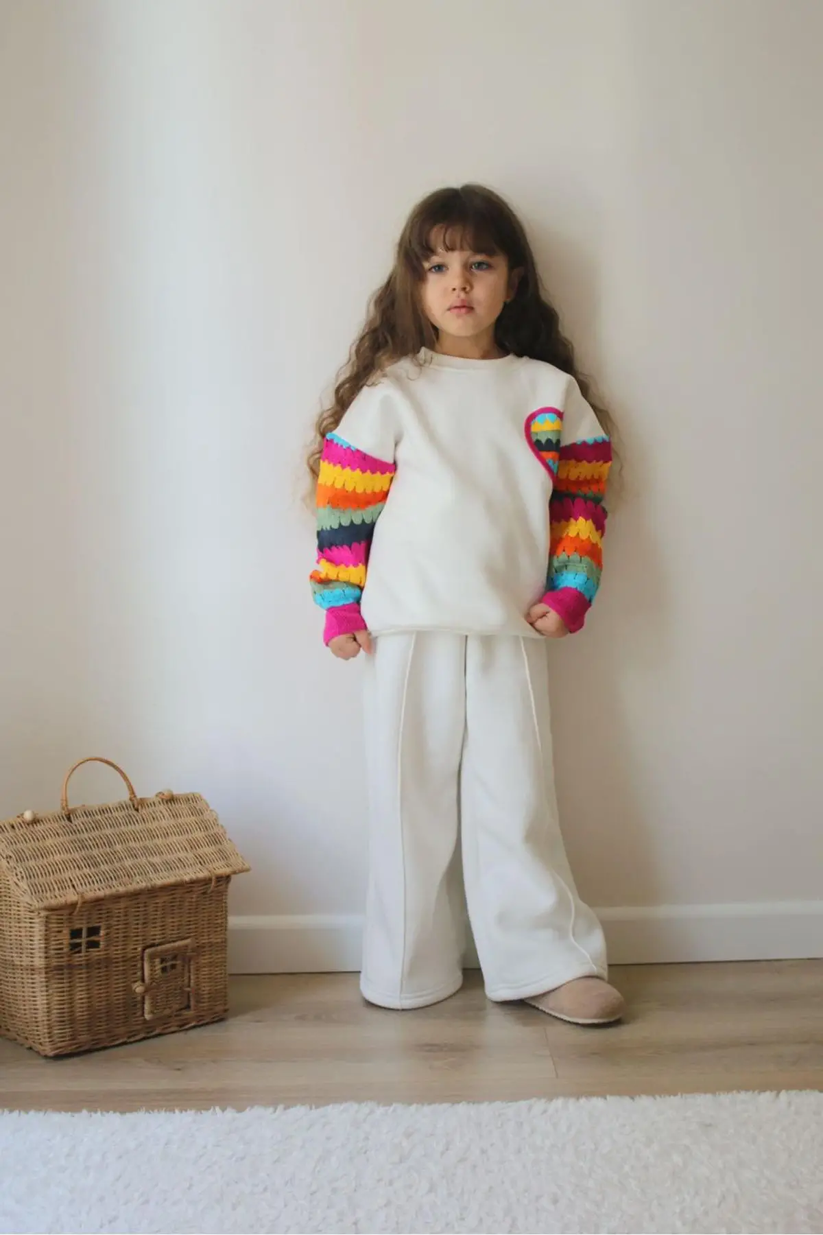 Kız Çocuk Yeni Sezon Dantelli Baskılı Alt Üst Takım