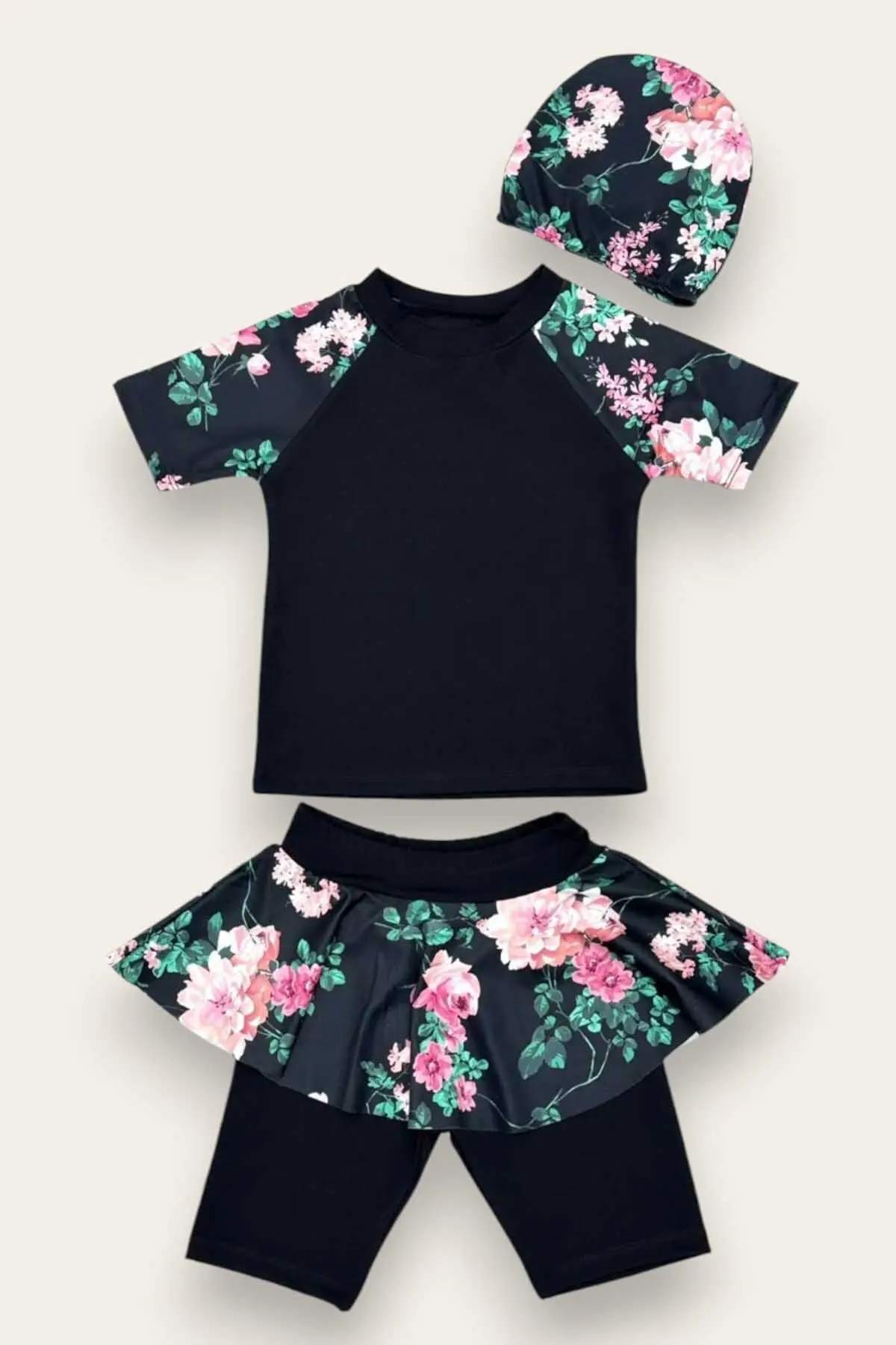 Likralı Dalgıç Kumaş Üç Parça Kız çocuk Mayo
