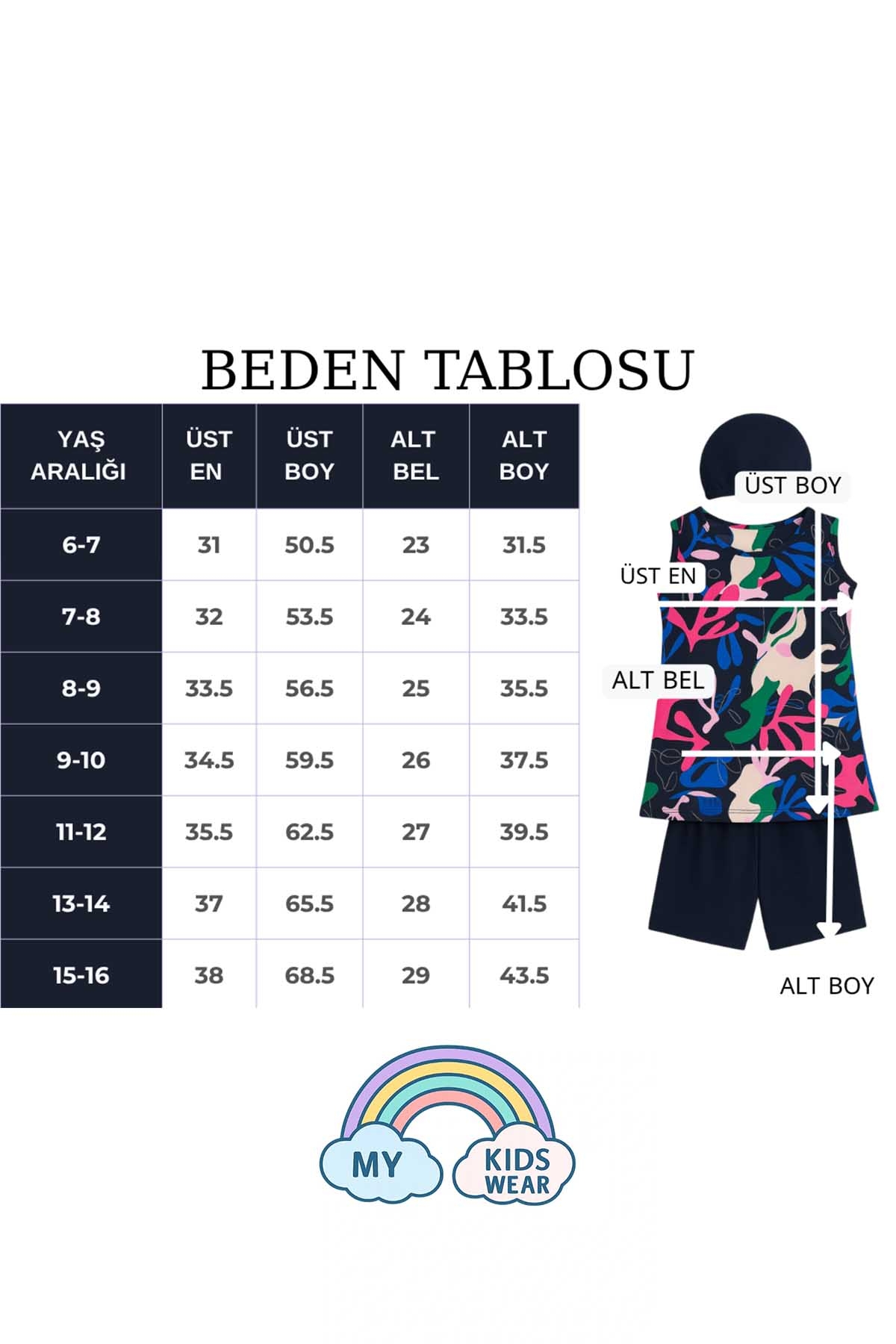 Üç Parça Kız Çocuk Kısa Şortlu Mayo